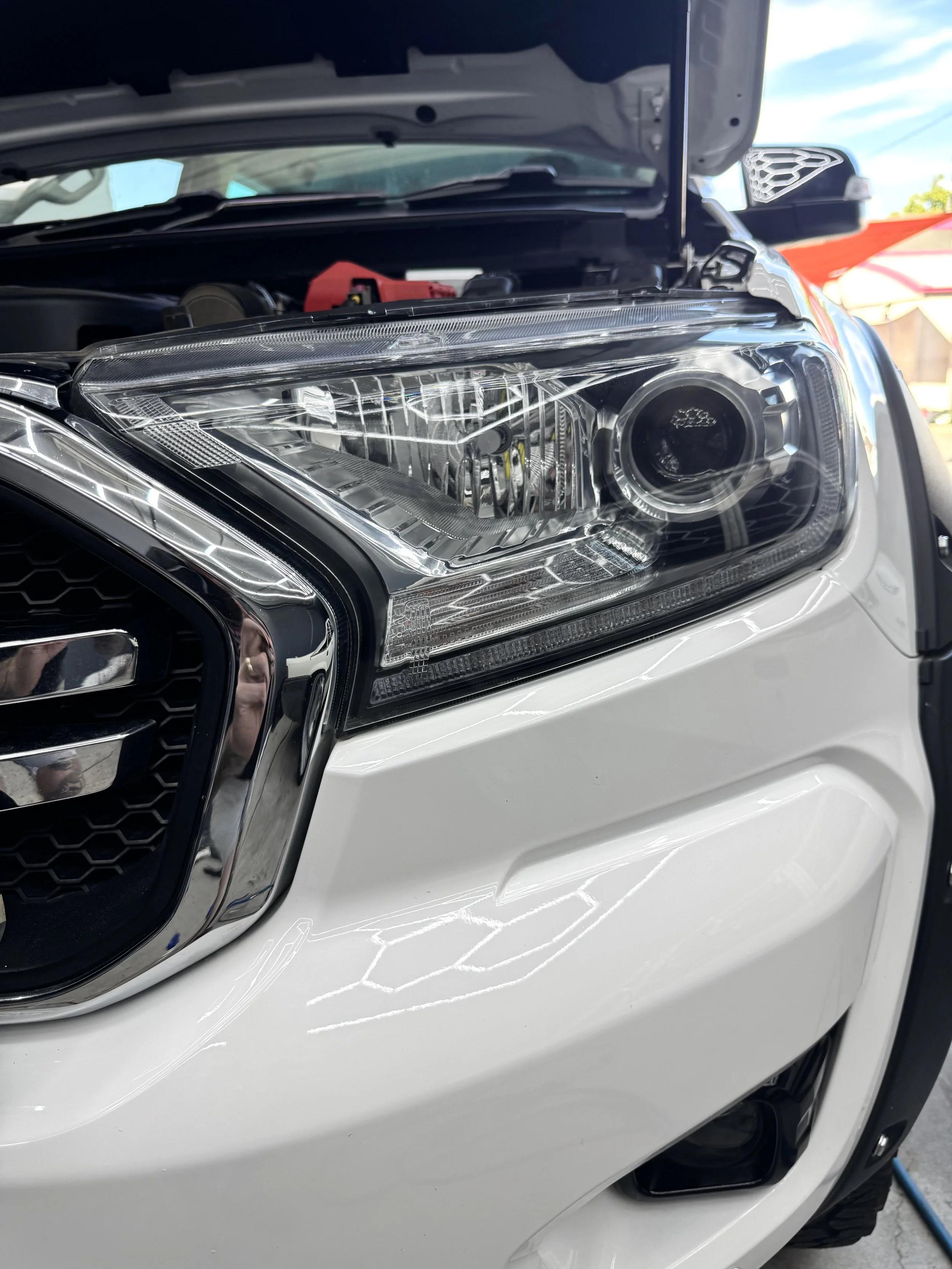 Headlight restoration improves the appearance and clarity of faded or oxidised headlights. The process involves sanding and polishing to remove surface oxidation and restore brightness, helping improve visibility and overall presentation.